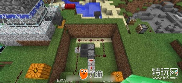 再换个角度给小伙伴们看看,其实唯一的难点就是立体想象力要好。需要注意的一点就是除了按钮处必须留一个坑来向下传递信号外,其他地方完全可以用方块填平的。