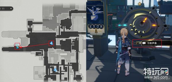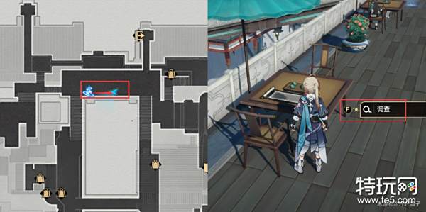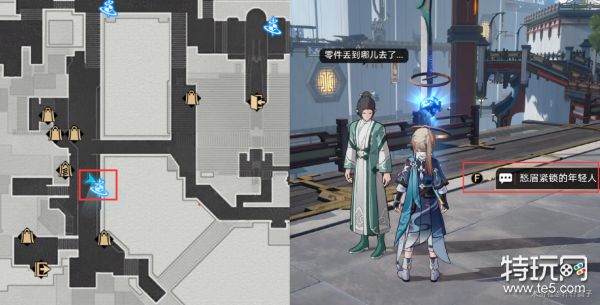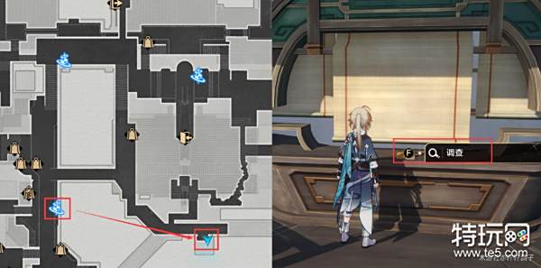 1)星槎海中枢:来到如图所示的位置,选择调查。得到脏兮兮的零件,提示找复仇年轻人。
