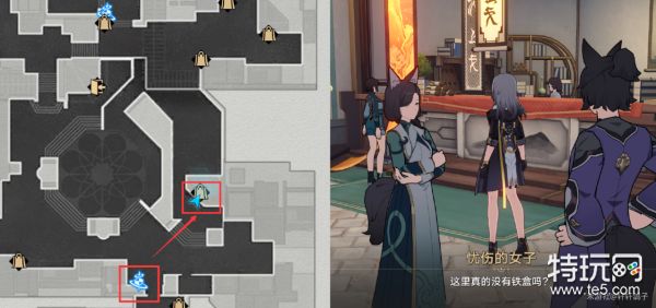 2)直接转身就能看到,和愁眉紧锁的年轻人对话,获得铁盒。