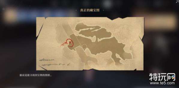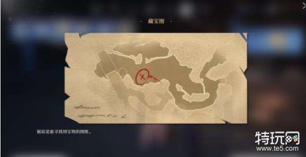 3、根据藏宝图标记位置,前往下图即可找到第一个宝藏,这个宝藏是假的,需要回去质问桑博。